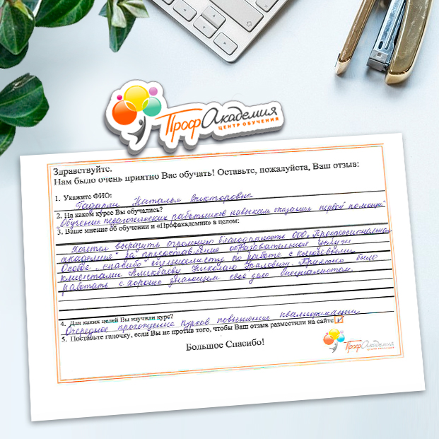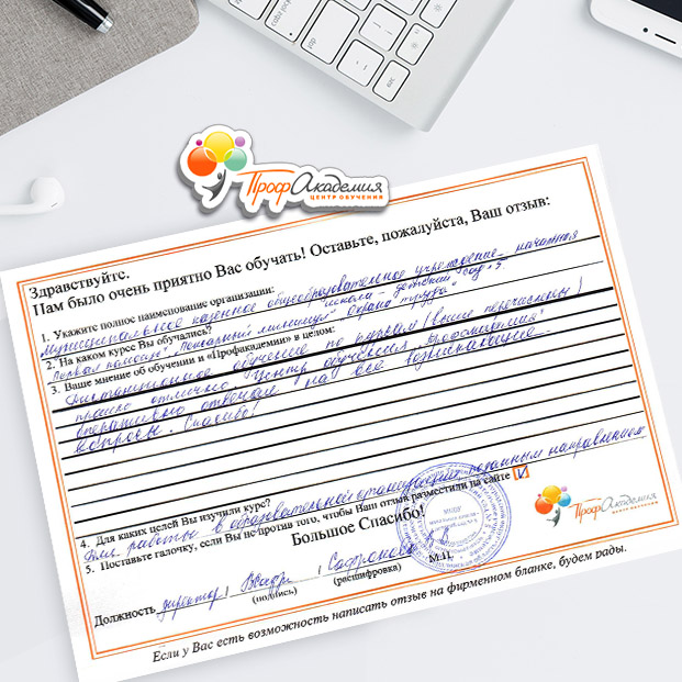 После успешного окончания обучения вы получите документы установленного образца. Высылаем по почте заказным письмом.
